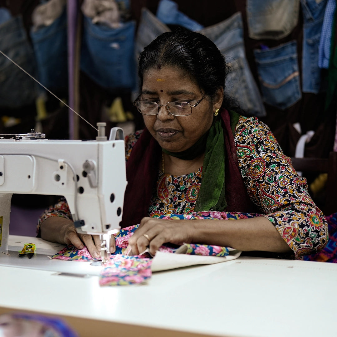 Each bag is handcrafted from 100% upcycled textiles by the incredible all-female team at Bluemadegreen in Kerala, India. From bold florals to geometric prints, every design is one-of-a-kind - a true celebration of creativity and conscious craftsmanship.