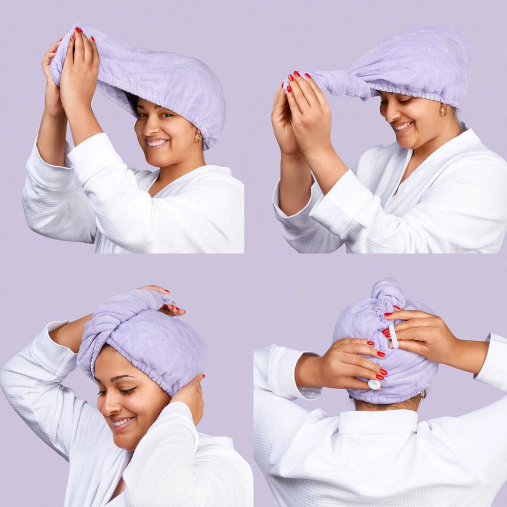 Highly absorbent microfibre hair towel wrap helps to reduce static and breakage. Luxuriously soft, speeds up drying time, reduces frizz, and minimises the risk of heat damage.